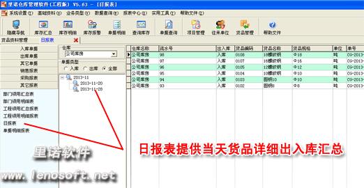 其他報表:可查詢某時期部門及工程的領(lǐng)用情況,日報表提供當(dāng)天貨品詳細(xì)出入貨單據(jù)情況匯總。