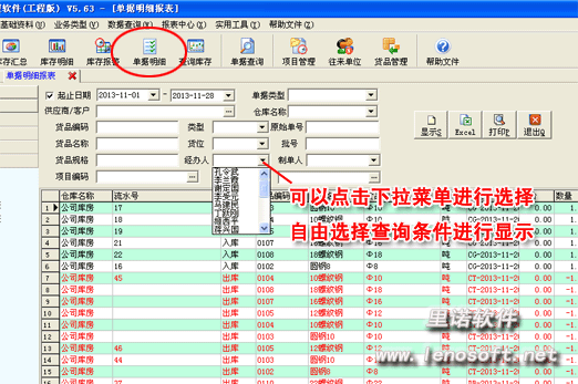 單據(jù)明細(xì)報表:您可以自由選擇查詢條件進(jìn)行顯示,單據(jù)明細(xì)報表可以幫助您查看到整個單據(jù)的具體信息,一目了然。
