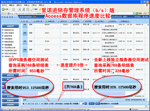 以下是江蘇無錫某客戶使用的里諾進銷存管理系統(b/s)版Access數據庫程序速度對比圖: