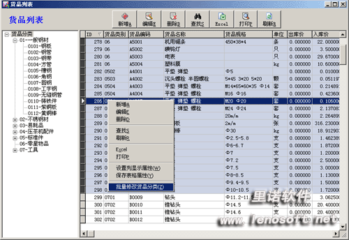 點擊軟件最上面的菜單"基礎資料"->"貨品管理"->"貨品資料管理",進入貨品資料管理窗體(如下圖所示).貨品資料支持樹形分類管理,可以讓您把成千上萬的貨品資料分類管理,讓您更易于管理和查看.并且貨品資料還支持Excel導入和導出.