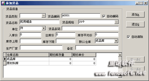 關于自動編碼 新增貨品資料時自動編碼默認會打上勾,這樣就要求貨品編碼的最后4位為阿拉伯數字,如果您的編碼是純字母,可以把自動編碼的勾去掉,但貨品編碼也沒有自動累加的功能了.