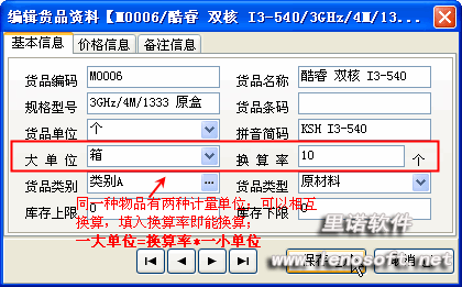 大單位:即同一物品有兩種計量單位,可相互換算。填入換算率即能換算。