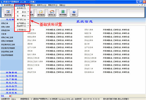 【基礎資料】:在基礎資料中可以對往來單位、貨品資料、倉庫、部門員工、生產(chǎn)管理、現(xiàn)金銀行、公司信息進行設置。方便填寫單據(jù)時使用。